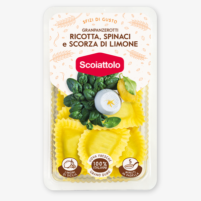 Granpanzerotti mit Ricotta, Spinat und Zitronenschale sind eine neue Interpretation des traditionellen Rezepts und verleihen ihm dank der Schale italienischer Acireale-Zitronen eine ZARTE, DUFTENDE NOTE.