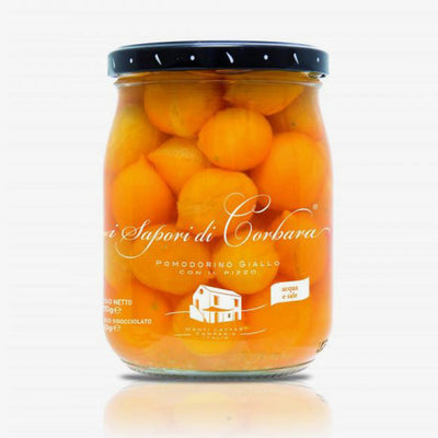 A Pomodorino di Corbara Giallo is an excellent product and an interesting alternative to the classic red tomato preserve. The yellow tomatoes are a very ancient product, rich in history and tradition, just think that the current name tomato comes from the fact that the first tomatoes arrived in Europe from the Americas were yellow and hence the name of golden apple. The red fruit varieties were in fact only cultivated later. It 'a fruit rich in taste but very delicate: its sweet and slightly acidic taste makes it perfect to enhance both fish and meat dishes and is excellent if tried on white pizza. Moreover, thanks to its high pectin content, it is perfect to prepare thick and creamy sauces. Yellow tomatoes, besides boasting an exceptional taste, are also an excellent food from a nutritional point of view: they are very rich in vitamins, with content three times higher than other tomatoes, and have a high concentration of beta-carotene, which play a very important role in the antioxidant action of our body. They contribute to the protection against pollutants and help the mucous membranes of the mouth, nose, throat, and lungs to reduce the onset of infections. The careful techniques of craftsmanship help to maintain the nutritional intake and vitamin content unchanged, so as to bring to our tables not only a product rich in taste but also an important ally for our health.